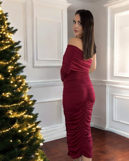 VESTIDO BRILLO ASIMETRICO PLATA OSCURA
