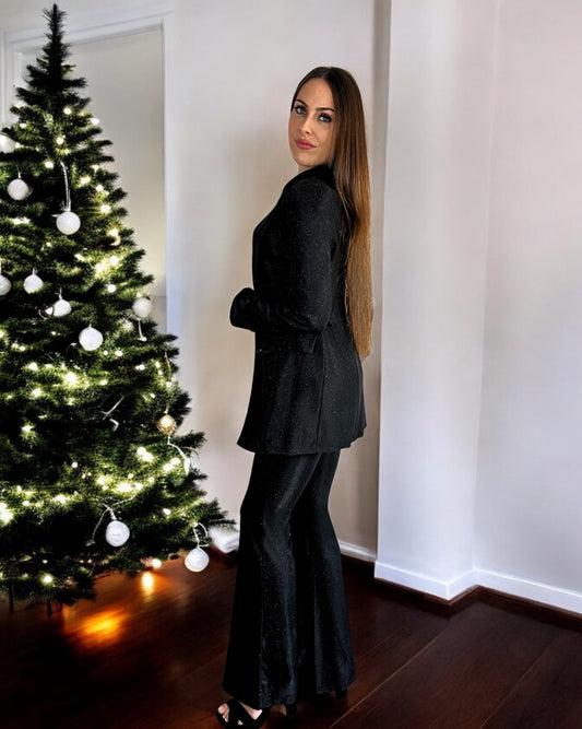 VESTIDO BRILLO MANGA LARGA NEGRO